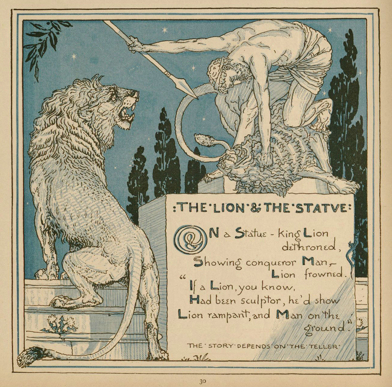 Walter Crane: The Lion and The Statue; Illustration for Baby’s Own Aesop (1887)