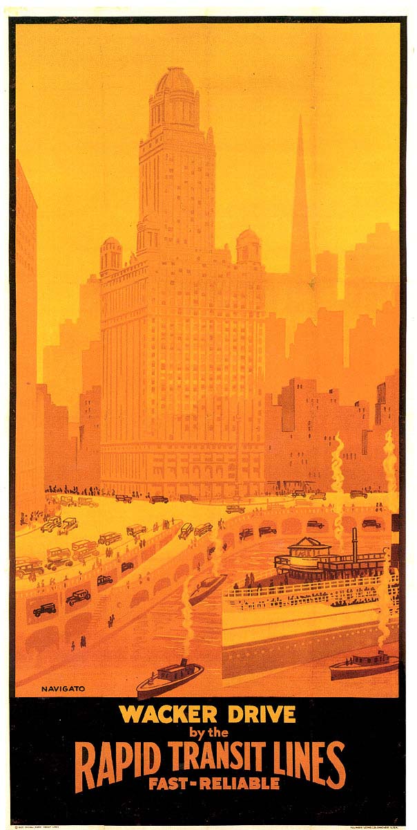 Posters commissioned by the Chicago Rapid Transit Company in the 1920’s to encourage Chicagoans to use mass transit to explore the city, not just for getting to and from work. Click to see full-size. (source)