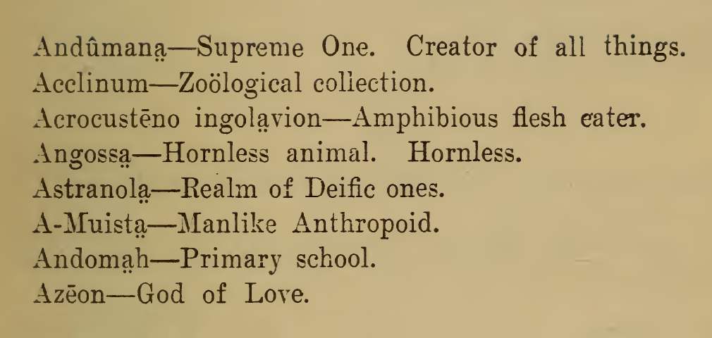 Here is the book’s glossary, with the elaborate diacritical marks of the Ento language omitted: