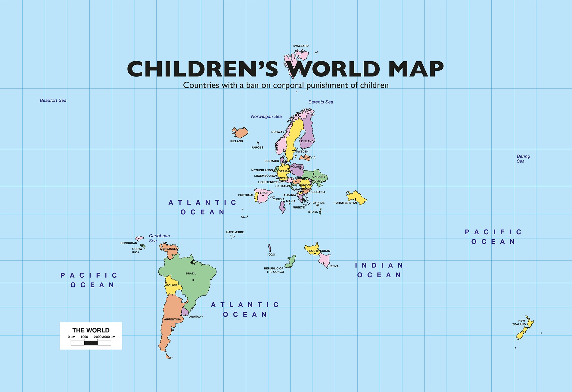 Sweden was the first country to outlaw corporal punishment of children—in 1979. As of 2013, when this map was produced by Save the Children, 52 countries had done so.