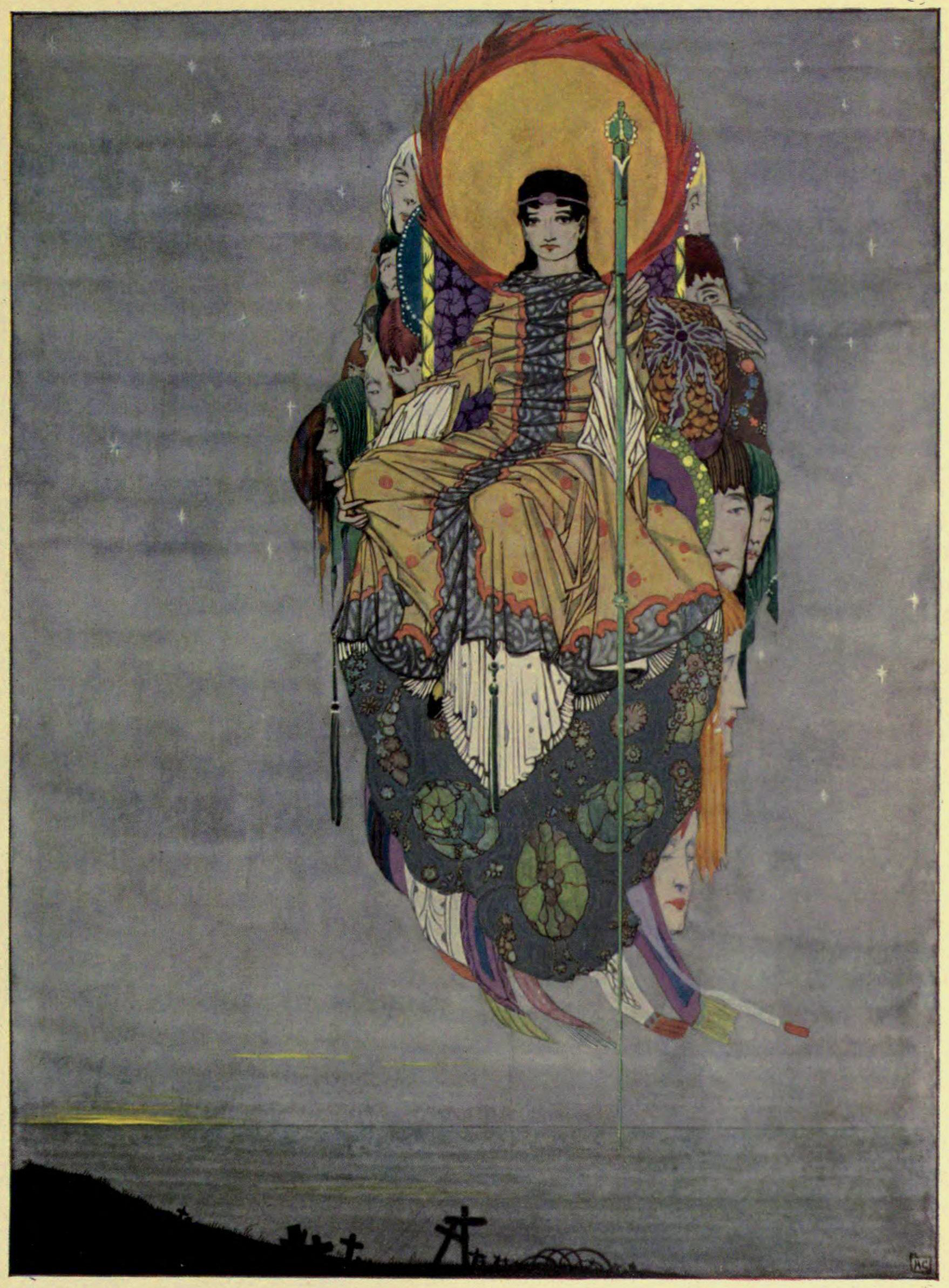 Harry Clarke: “Honour has come back, as a king, to earth,” illustration for Rupert Brooke’s poem “The Dead” in The Year’s at the Spring; an Anthology of Recent Poetry (1920).