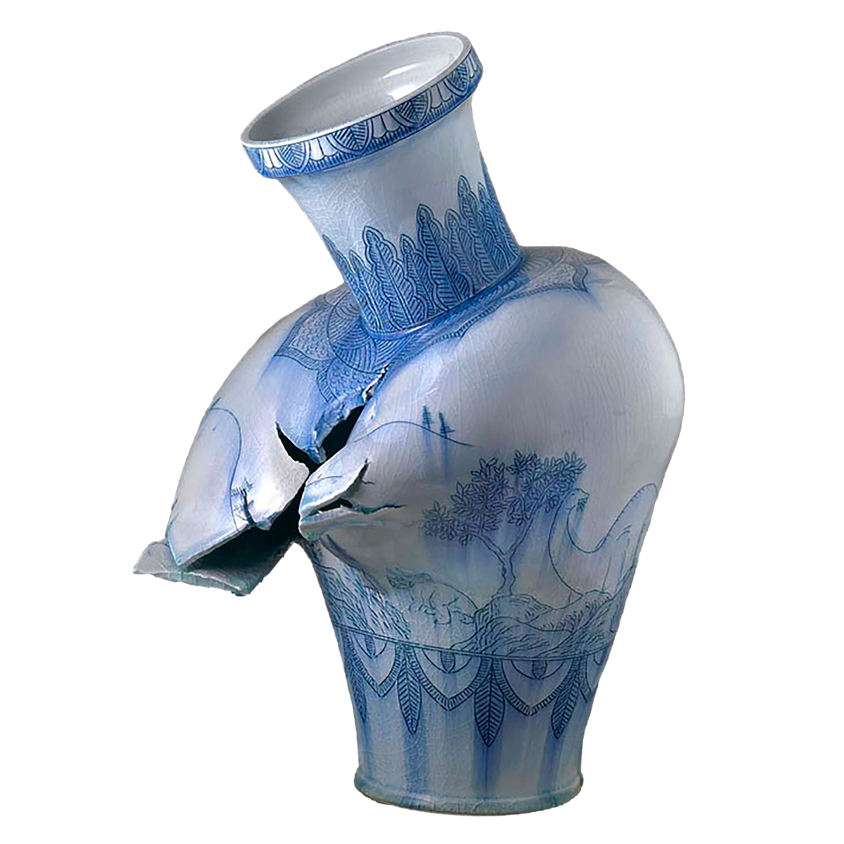 Steven Young Lee: Vase with Landscape and Dinosaurs (2014) (source)