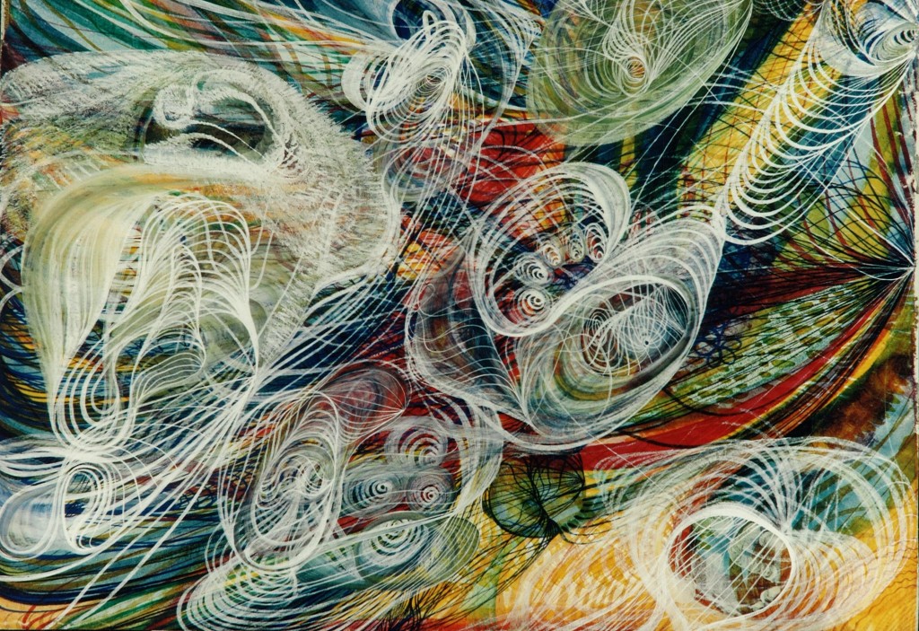 Georgiana Houghton was a Victorian spiritualist and medium whose many paintings include descriptions on the reverse detailing the various spirits and angels that influenced her in producing them. Houghton called these works “spirit drawings.”