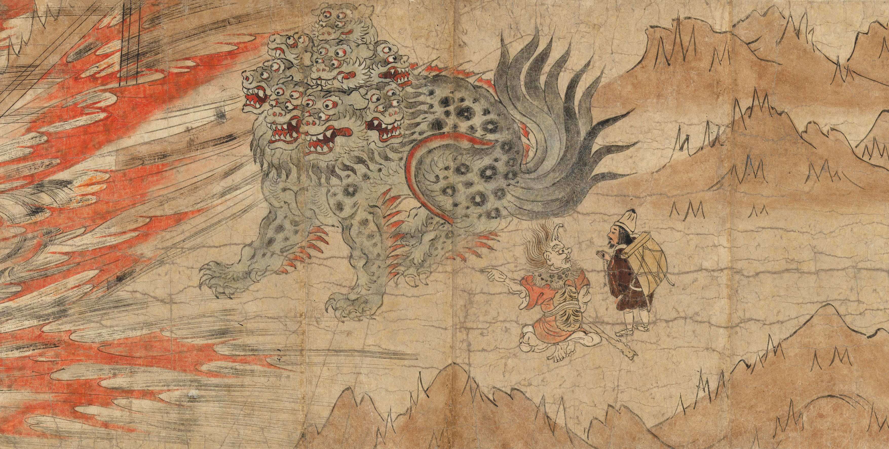 This illustration comes from a series of handscrolls telling the legends of the Shinto Kitano Tenjin Shrine, located in Kamakura, Japan. The shrine is dedicated to Sugawara no Michizane, a 9th century scholar, poet, and statesman who came to be deified as Tenjin, the Shinto god of learning. Kamakura period (1185–1333).