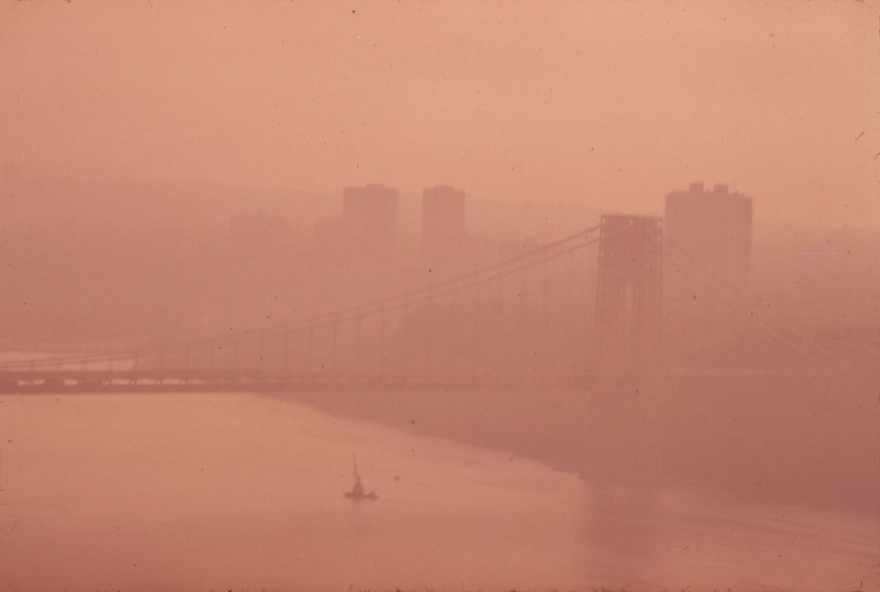 Chester Higgins: Environmental Protection Agency photo – “The George Washington Bridge in heavy smog. View toward the New Jersey side of the Hudson River” (May 1973)