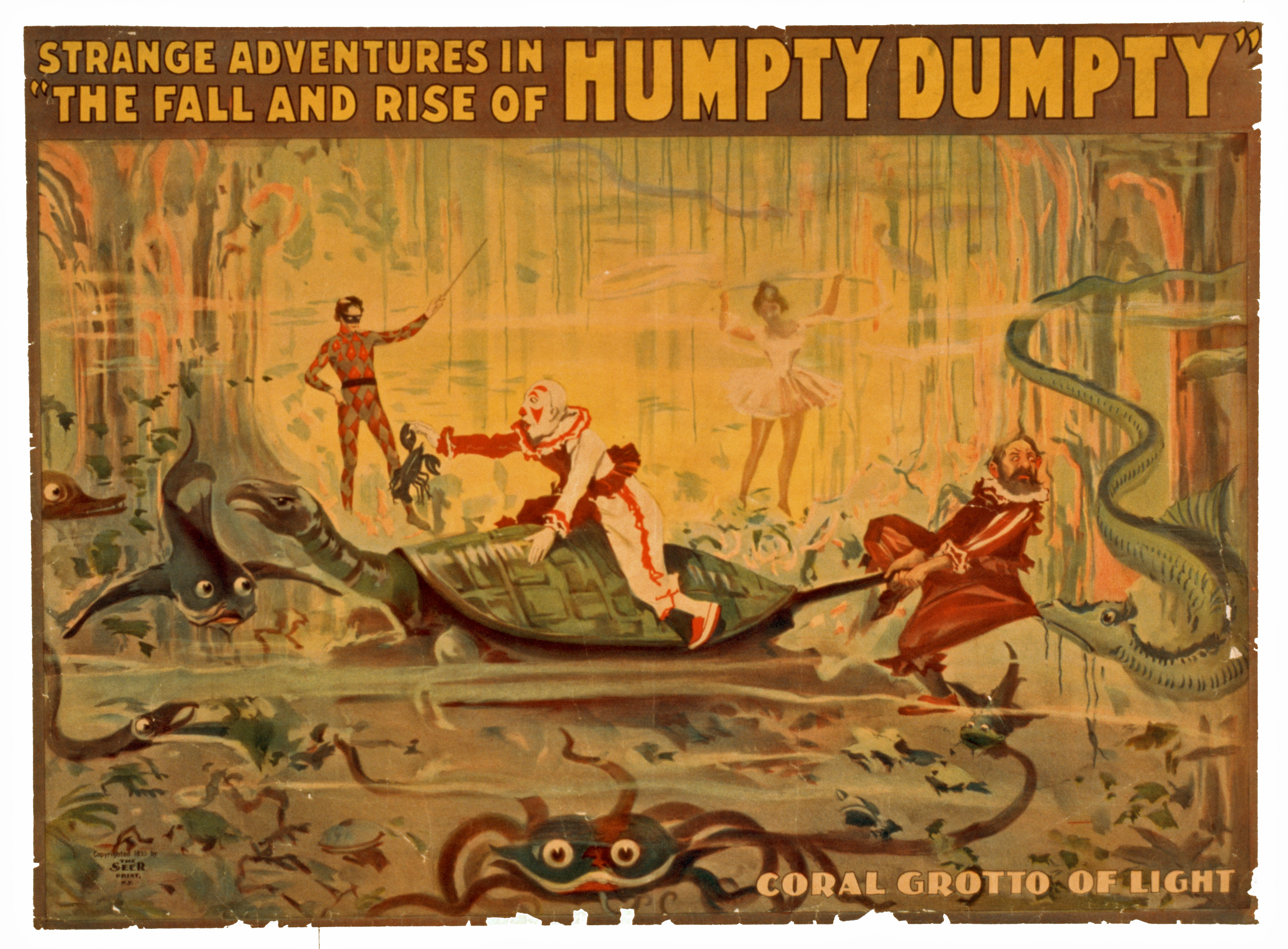 A. S. Seer, printer: Strange Adventures in The Fall and Rise of Humpty Dumpty (c. 1899) (source)