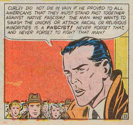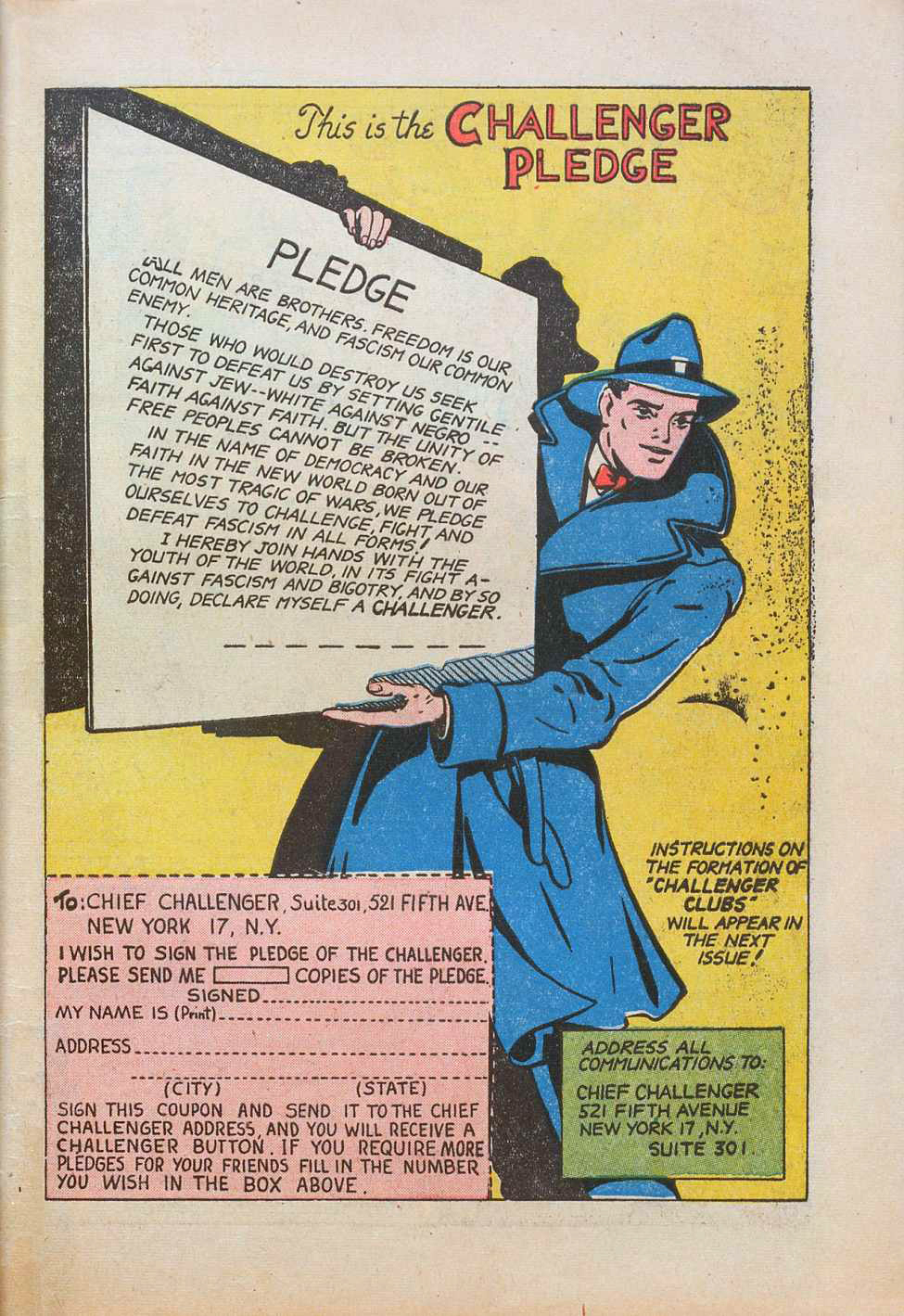 The Challenger—a tough-talking comic book hero from the 1940’s who fights fascism at home: “The man who wants to smash the unions or attack racial or religious minorities is a fascist! Never forget that, and never forget to fight that man!” Read the whole issue here—and take the Challenger Pledge!