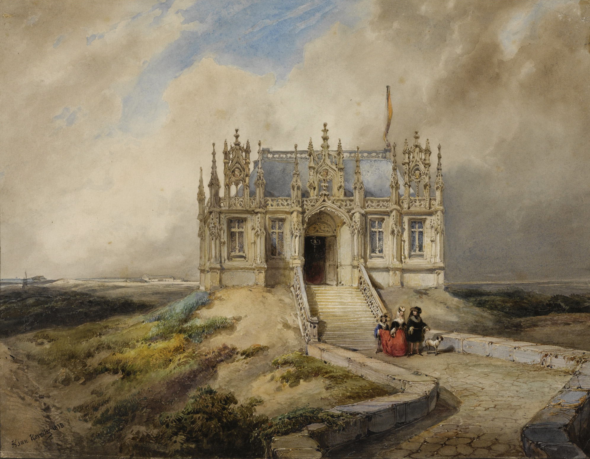 Hubertus van Hove: A Couple in Front of a Gothic Building (1838)