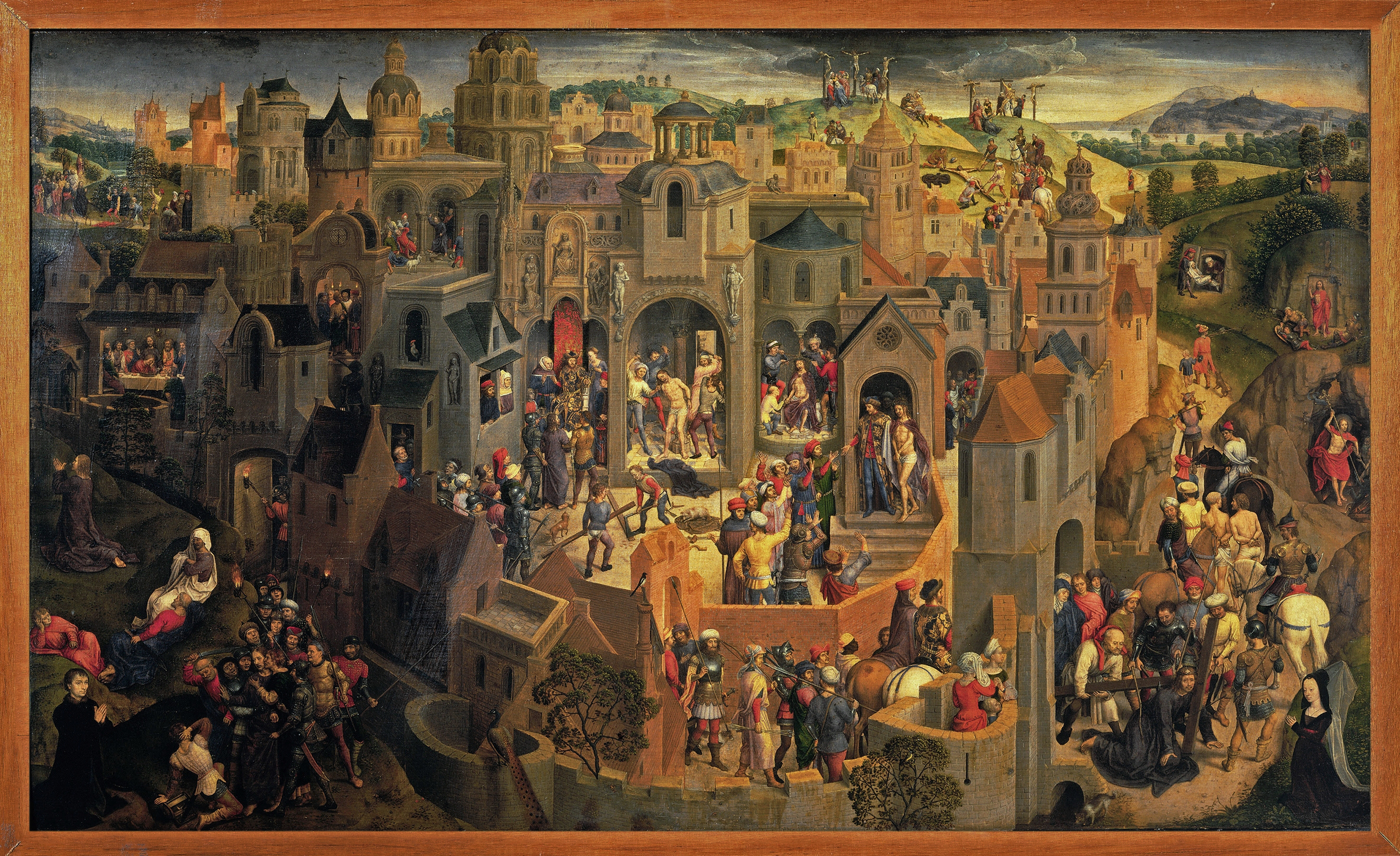 Hans Memling: Scenes from the Passion Of Christ (1470-71); in the painting, 23 scenes from the life of Christ coexist in a single composition.