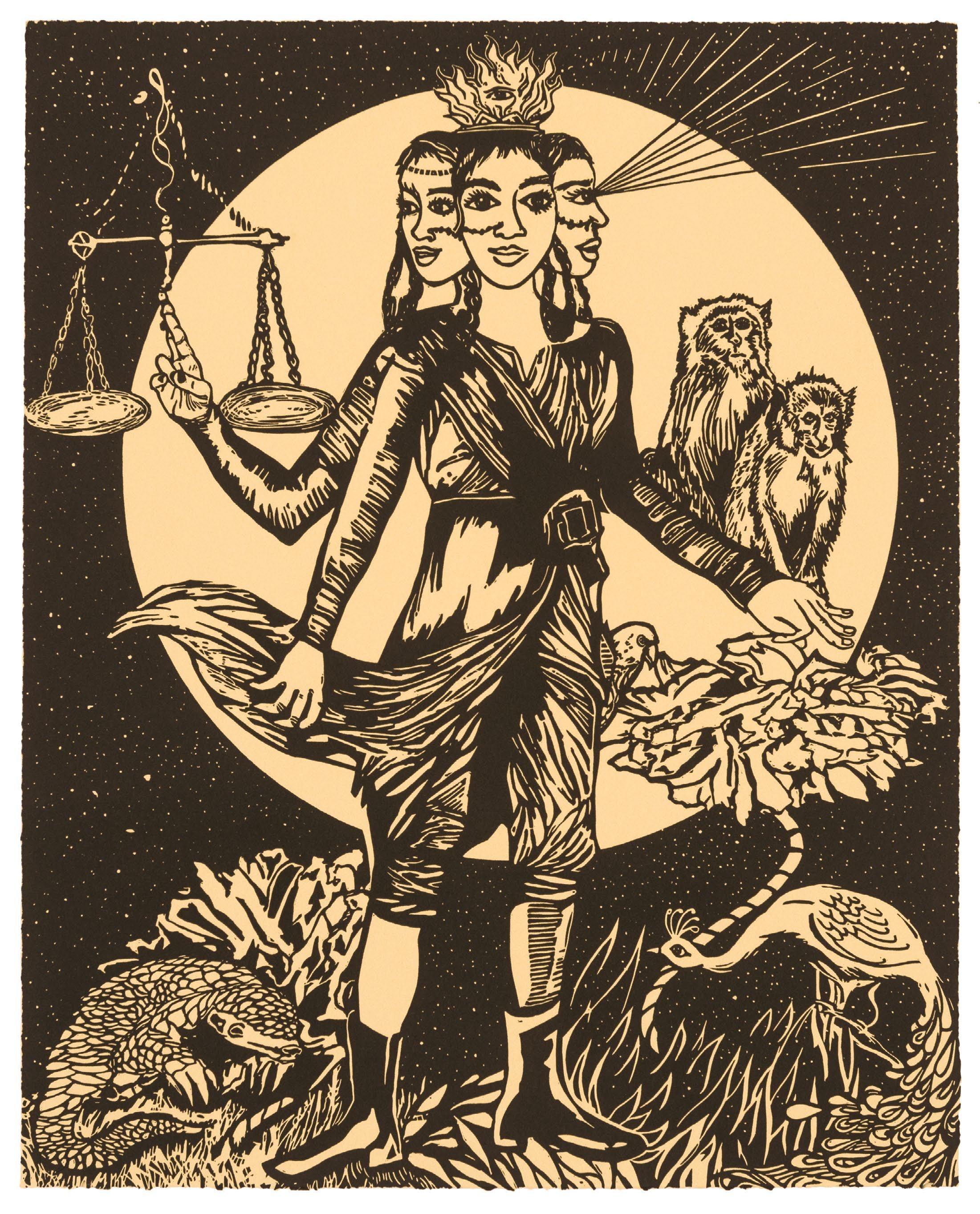 Image: Linocut illustration by Chitra Ganesh (2018). (See more.)
