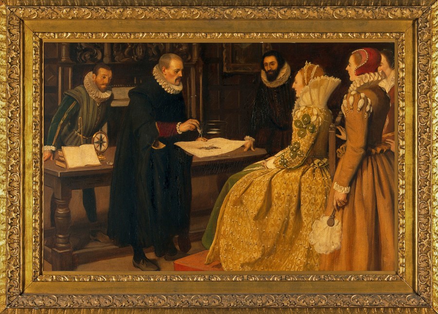 William Gilbert demonstrating the magnet before Queen Elizabeth, 1598. Oil painting by Ernest Board.